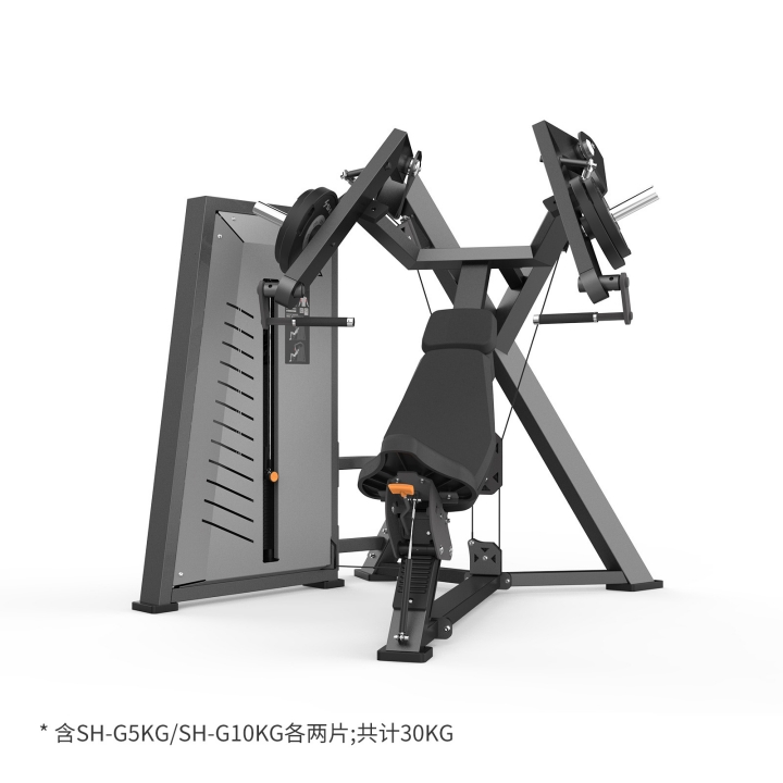 舒华卧姿推胸训练器SH-G7801主要锻炼部位是胸大肌、三角肌前束和肱三头肌。